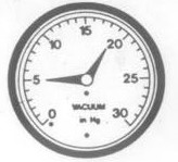 The gauge at left shows an extremely low reading, which holds fairly steady. This means the engine is producing less power and, therefore, less vacuum. Common causes of steady low reading are blowby due to worn piston rings or possibly late ignition or valve timing. An extremely low reading could also indicate an air leak at the intake manifold or throttle body.